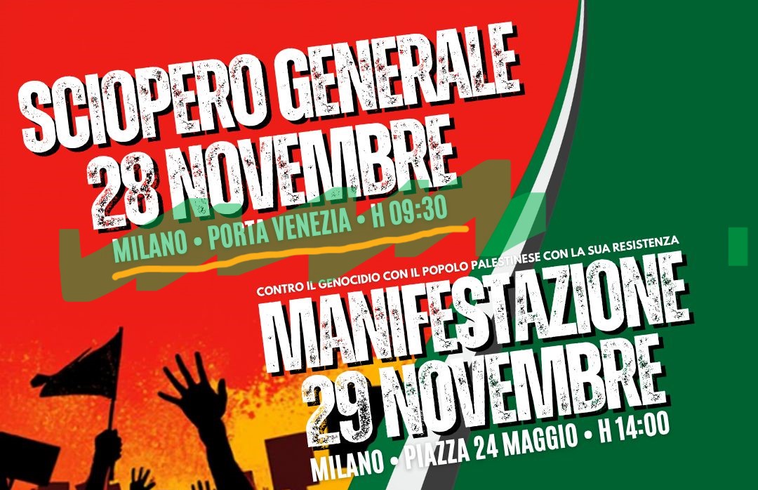SCIOPERO GENERALE, 28 Novembre – MANIFESTAZIONE in solidarietà del popolo palestinese, 29 Novembre