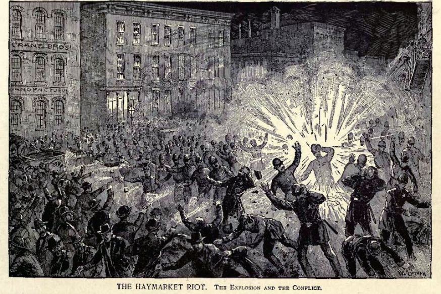 A Chicago gli scioperi andarono oltre il 1° maggio, ed il 3 maggio la polizia, sparando sui manifestanti, uccise 6 operai oltre a molti feriti. Il 4 maggio la protesta continuò con più rabbia e la polizia proseguì nella sua opera facendo strage di scioperanti; ma in quell’occasione una bomba fu lanciata contro le “forze dell’ordine” provocando varie perdite tra le loro fila.