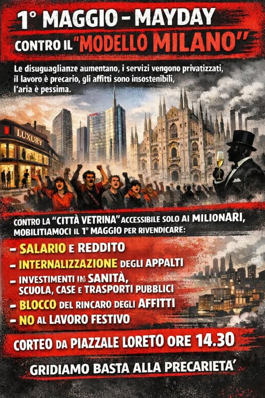 1 ° MAGGIO – MAYDAY CONTRO IL “MODELLO MILANO”