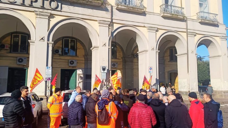 Il 22 gennaio 2026 le lavoratrici e i lavoratori dell’appalto di igiene ambientale gestito da TEKRA hanno promosso un presidio in piazza davanti al Comune di Aversa (CE)