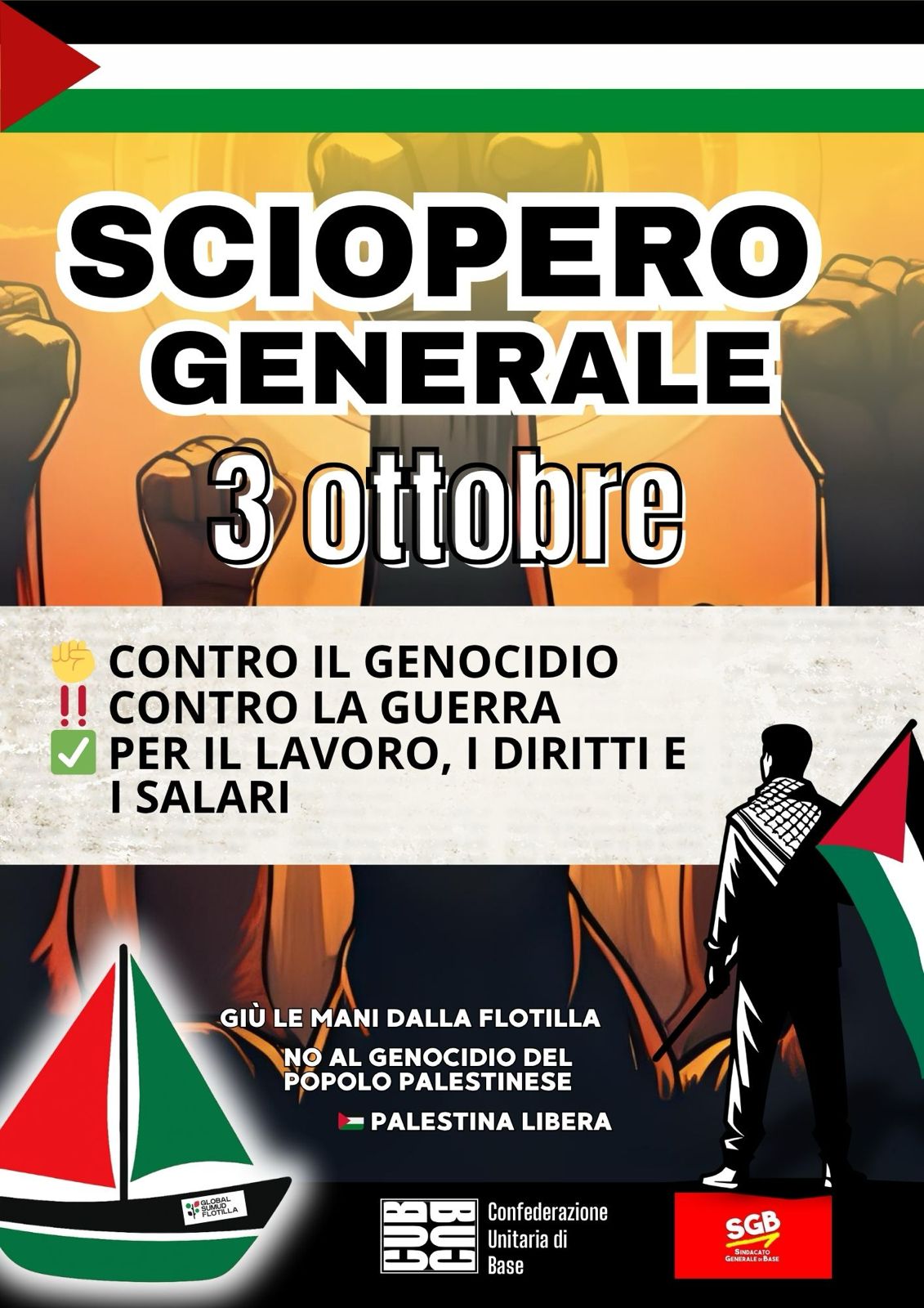 Una decisione politica tesa a negare l’evidenza che, come riportato nella nostra convocazione, a norma dell’art. 2 comma 7 della Legge 146/90 non si deve ottemperare ai “preavvisi minimi” in quanto ci troviamo di fronte ad una grave lesione della Costituzione e della messa in pericolo della vita dei lavoratori imbarcati nella Global Sumud Flottilla.