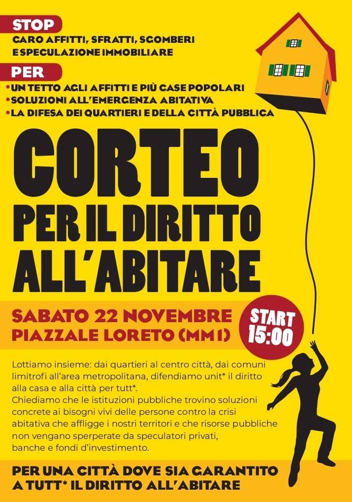 Unione inquilini Milano è tra i promotori del corteo per il diritto all’abitare che sabato 22 novembre sfilerà per Milano, a partire dalle ore 15 con ritrovo in piazzale Loreto.