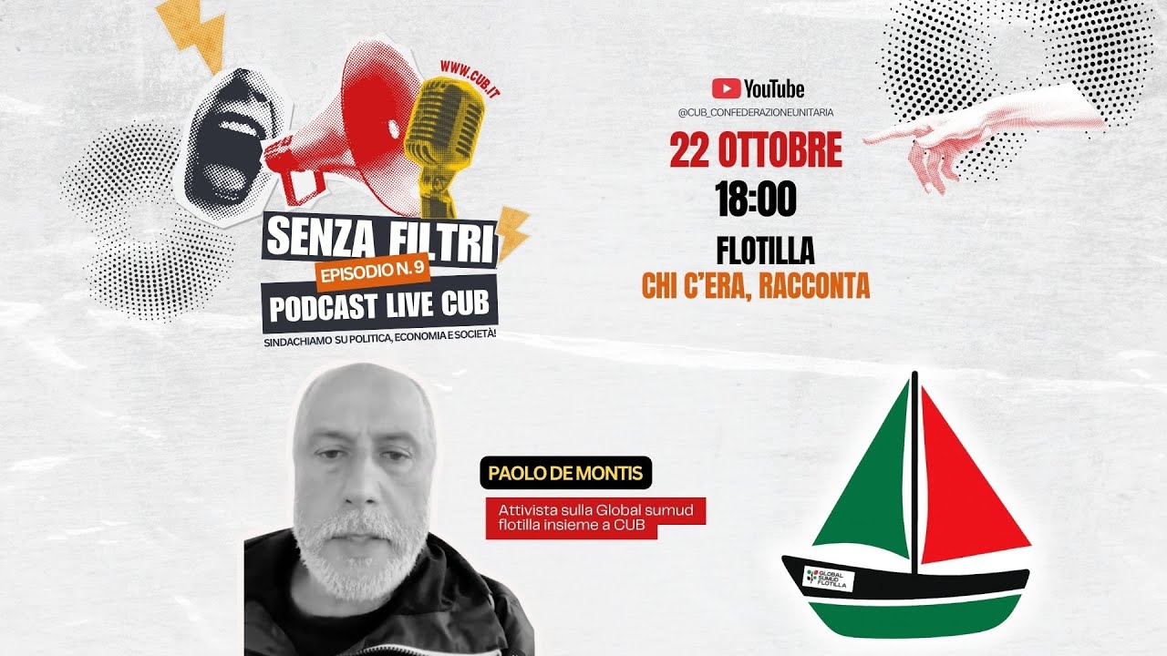 Il genocidio in Palestina continua nell’indifferenza dell’Europa e nella complicità dei governi.CUB rilancia la mobilitazione con uno sciopero generale politico, mentre una flotta internazionale salpa per portare aiuti e rompere l’assedio.