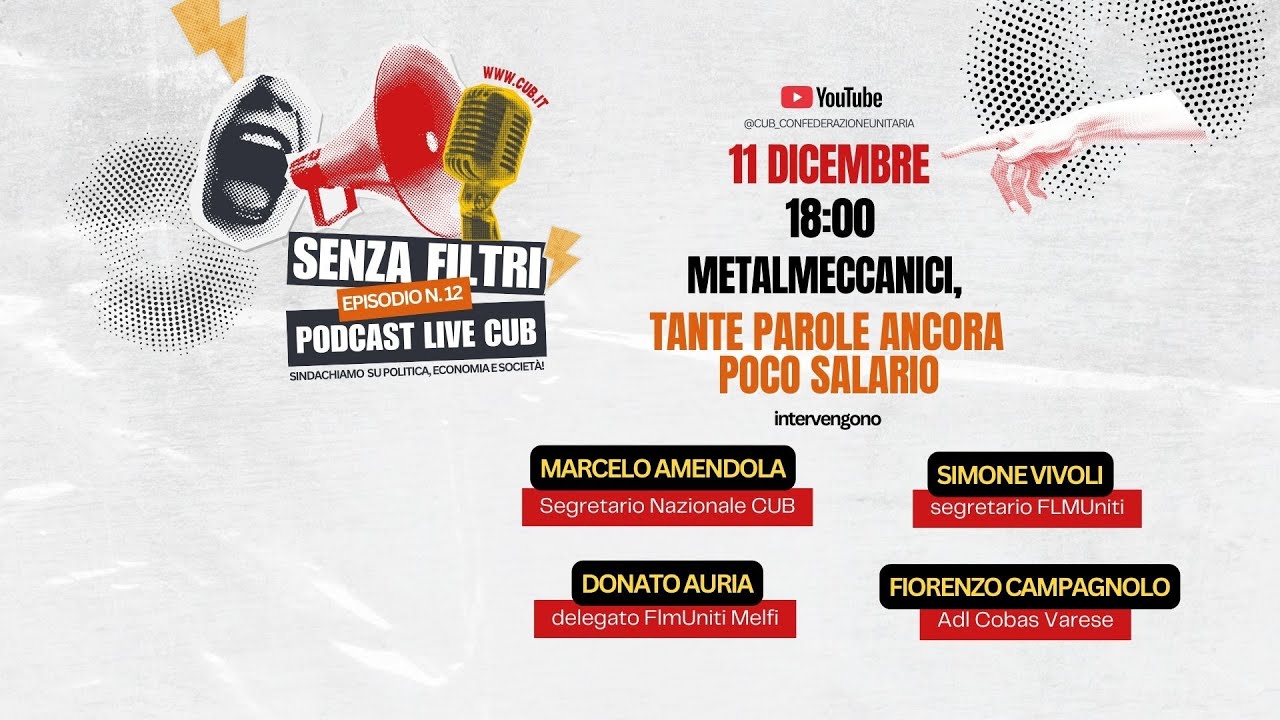 Una puntata dedicata alle condizioni reali dei lavoratori metalmeccanici: stipendi fermi, carichi di lavoro crescenti, contratti che non rispecchiano la vita nei reparti. Un confronto diretto tra sindacati conflittuali e delegati che vivono ogni giorno questa realtà.