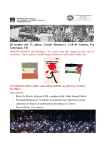 Presentazione dell’Antologia “La stessa cosa del sangue – Racconti con la Resistenza“, martedì 28 ottobre a Genova, alle ore 17 presso il Circolo Ricreativo CAP in via Albertazzi 3r
