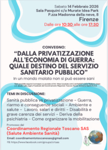 Sabato 14 febbraio a Firenze si e’ svolto il convegno “Dalla privatizzazione all’economia di guerra: quale destino del Servizio Sanitario pubblico”.