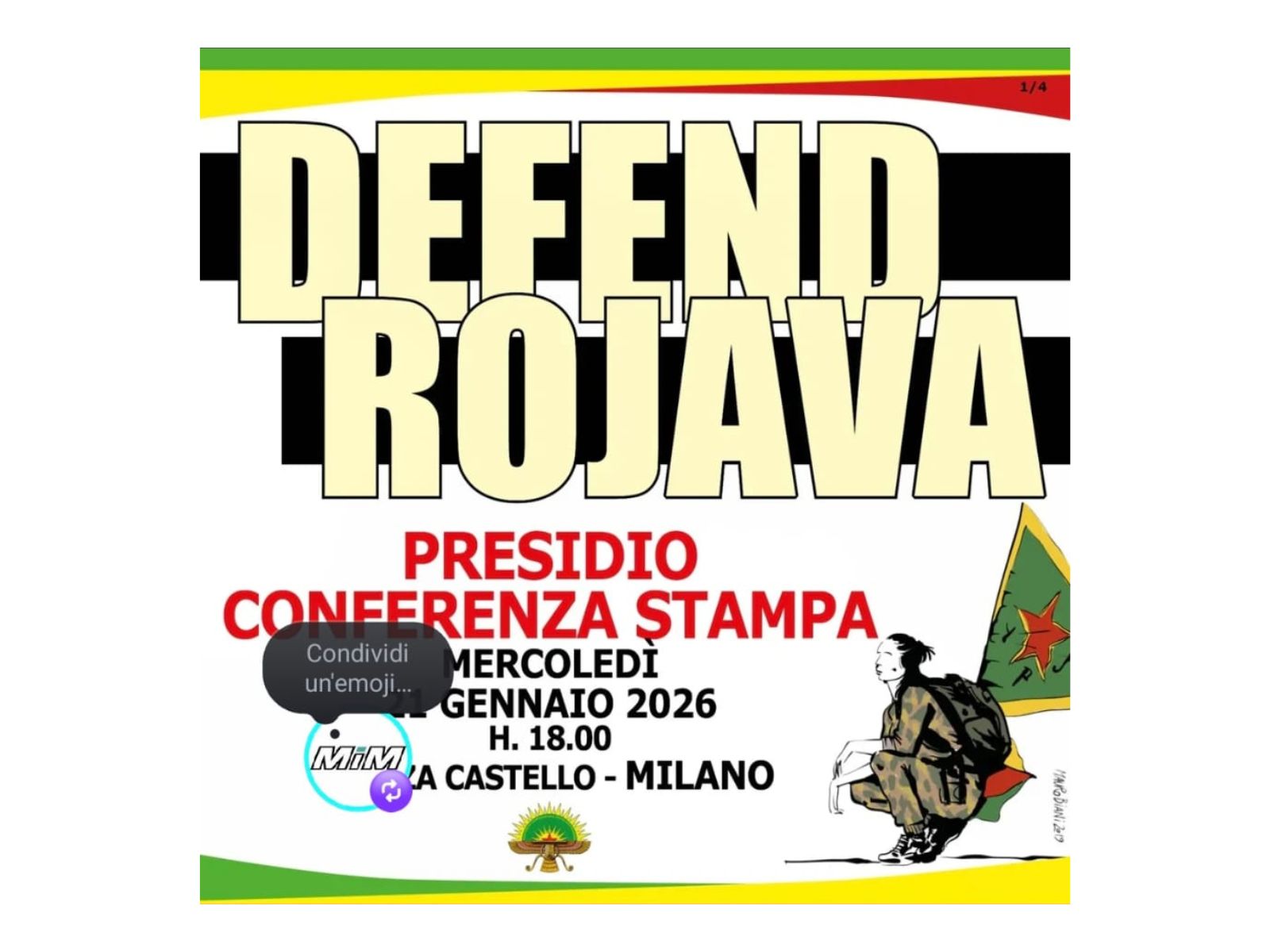 Mercoledì 21 gennaio, ore 18.00, piazza Castello Milano, gridiamo il nostro appoggio alla rivoluzione confederale, al percorso di pace, al rifiuto della guerra e alla tutela dell’autodeterminazione dei popoli