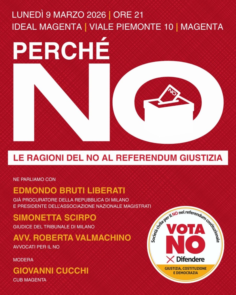 Le ragioni del NO, incontro a Magenta lunedì 9 marzo ore 21