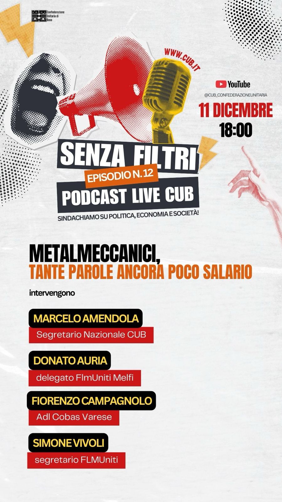 SENZA FILTRI – PODCAST LIVE CUB, Episodio n.12