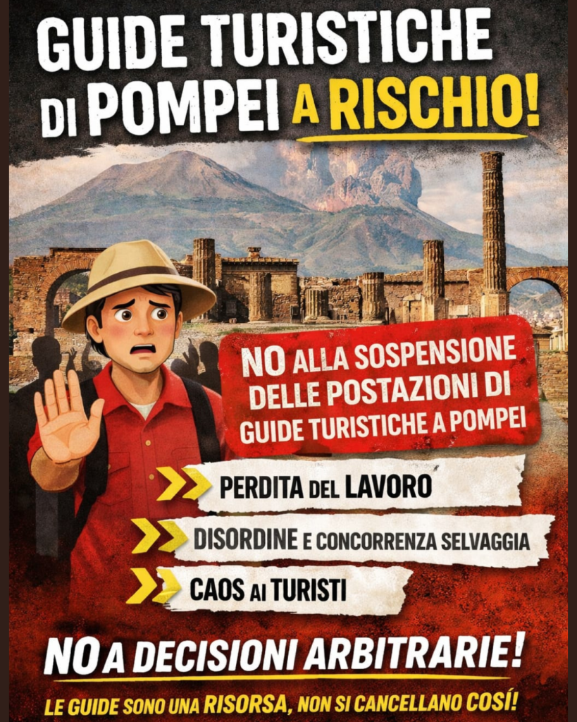 Secondo quanto emerso, tali notizie farebbero riferimento inizialmente a una sospensione con decorrenza immediata, successivamente indicata – sempre in modo non formalizzato – come differita al 31 dicembre. Allo stato attuale, tuttavia, non risulta adottato né comunicato alcun atto scritto, protocollo o provvedimento ufficiale da parte della Direzione del Parco Archeologico di Pompei che disponga la sospensione delle postazioni o dei presidi delle guide turistiche.