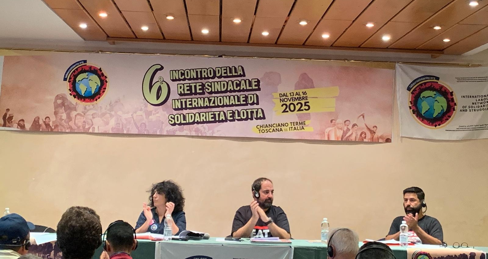 Chianciano, Siena, Italia, 13-16 novembre 2025 – Si è aperta ieri la sesta riunione della Rete sindacale internazionale di solidarietà e lotta, che dopo due anni, e a più di una decina dalla sua fondazione, riunisce i delegati sindacali di più di trenta Paesi nel mondo. Per la prima volta in Italia, l’incontro che è in corso e terminerà domenica, ha richiamato i numerosi delegati in rappresentanza di una dozzina di milioni di lavoratori di tutti i continenti e appartenenti ai differenti settori lavorativi.