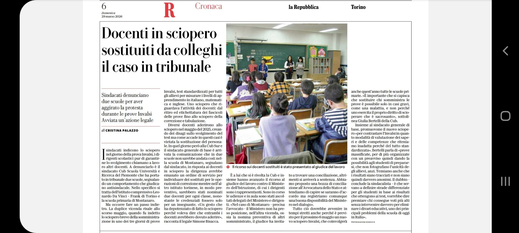 👉🏻 Leggi anche “Docenti in sciopero sostituiti per assicurare le prove Invalsi, caso in tribunale“, La Repubblica-Torino, 29 marzo 2026